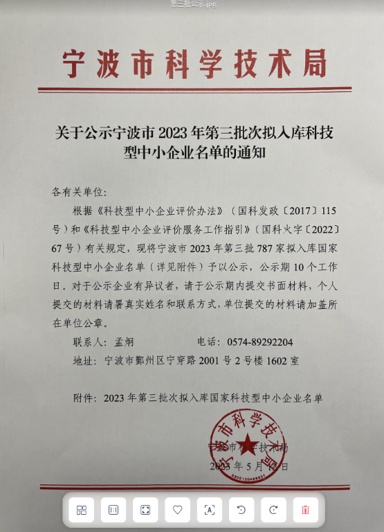 寧波市2023年第3批擬入庫(kù)科技型中小企業(yè)名單公示正文.jpg PICTURE