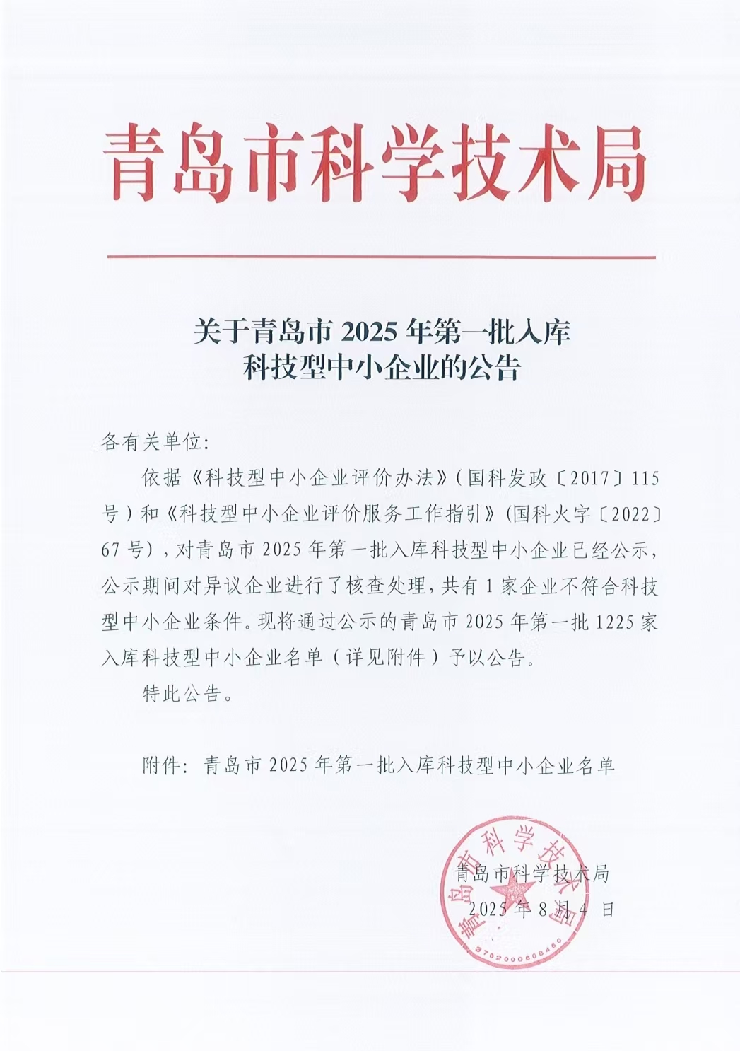 青島市2025年第1批入庫(kù)科技型中小企業(yè)名單公告正文.jpg PICTURE