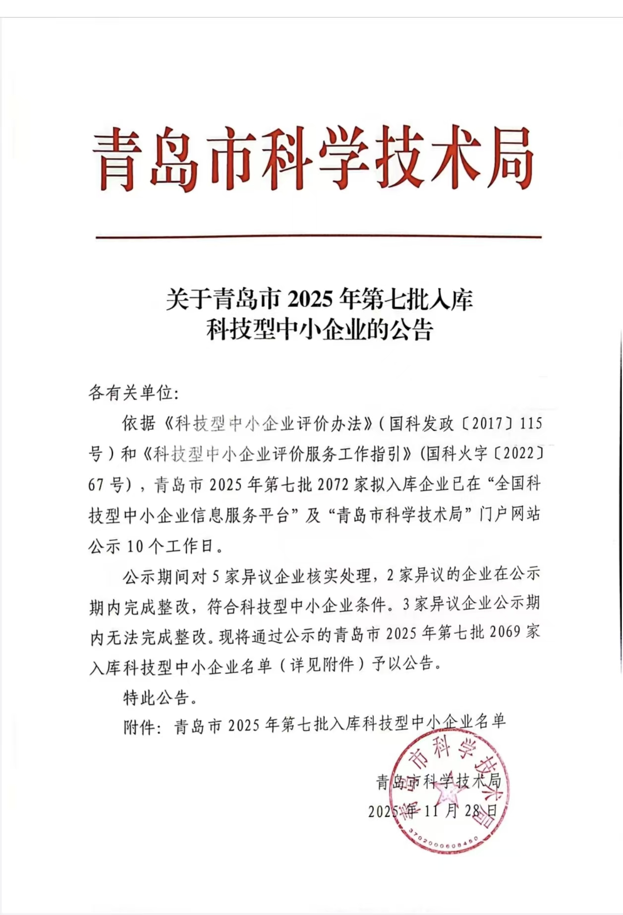 青島市2025年第7批入庫(kù)科技型中小企業(yè)名單公告正文.jpg PICTURE