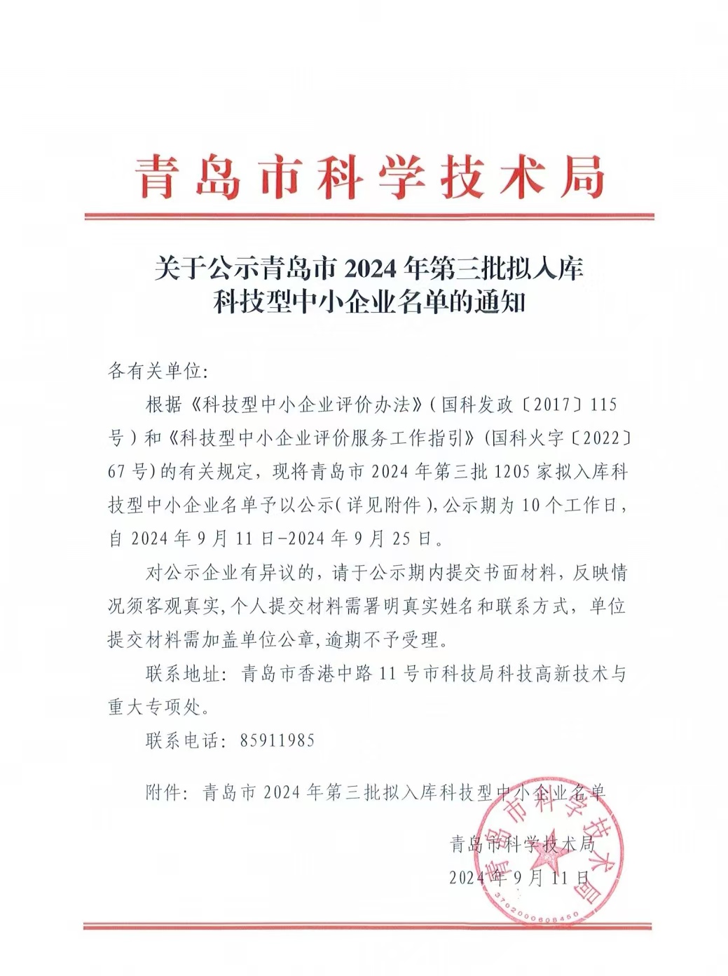 青島市2024年第3批擬入庫科技型中小企業(yè)名單公示