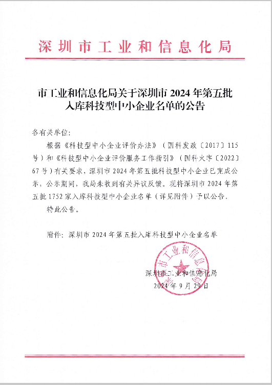 深圳市2024年第5批入庫科技型中小企業(yè)名單公告