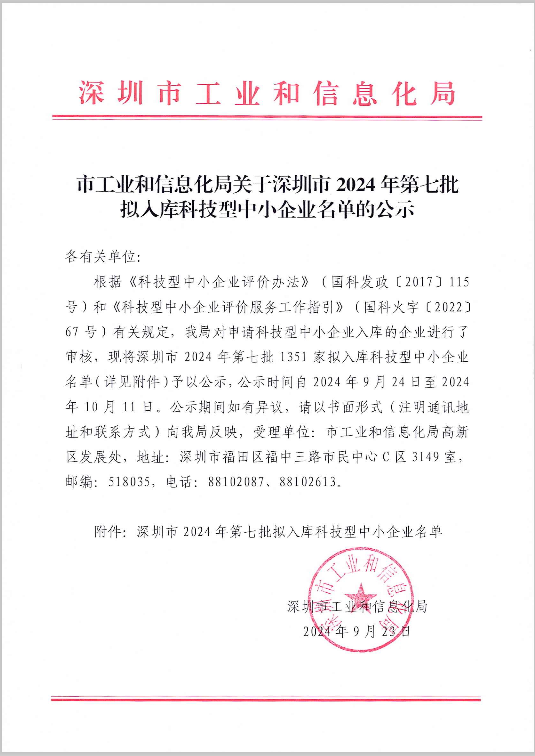 深圳市2024年第7批擬入庫(kù)科技型中小企業(yè)名單公示正文.jpg PICTURE