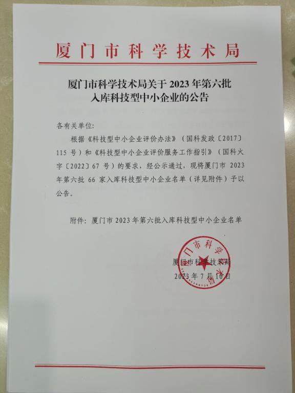 廈門市2023年第6批入庫科技型中小企業(yè)名單公告