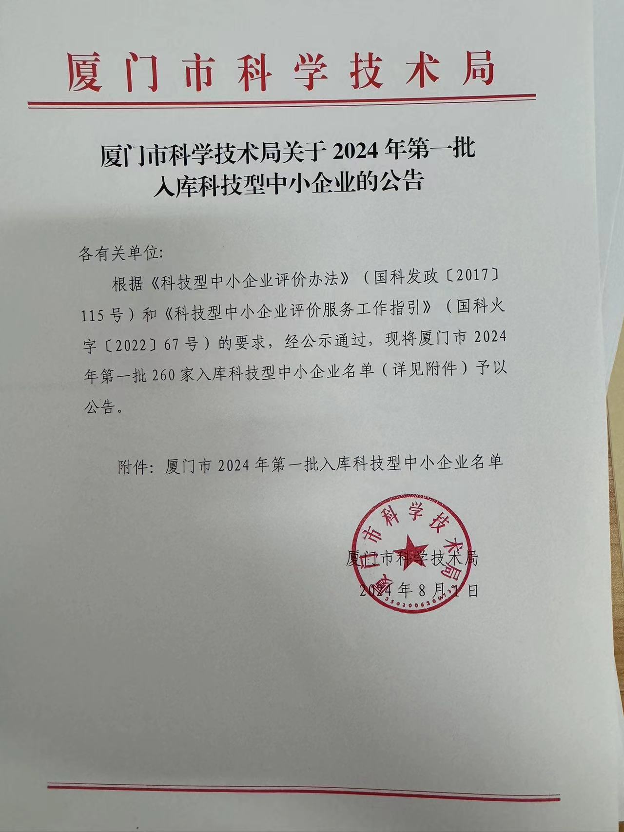 廈門市2024年第1批入庫科技型中小企業(yè)名單公告