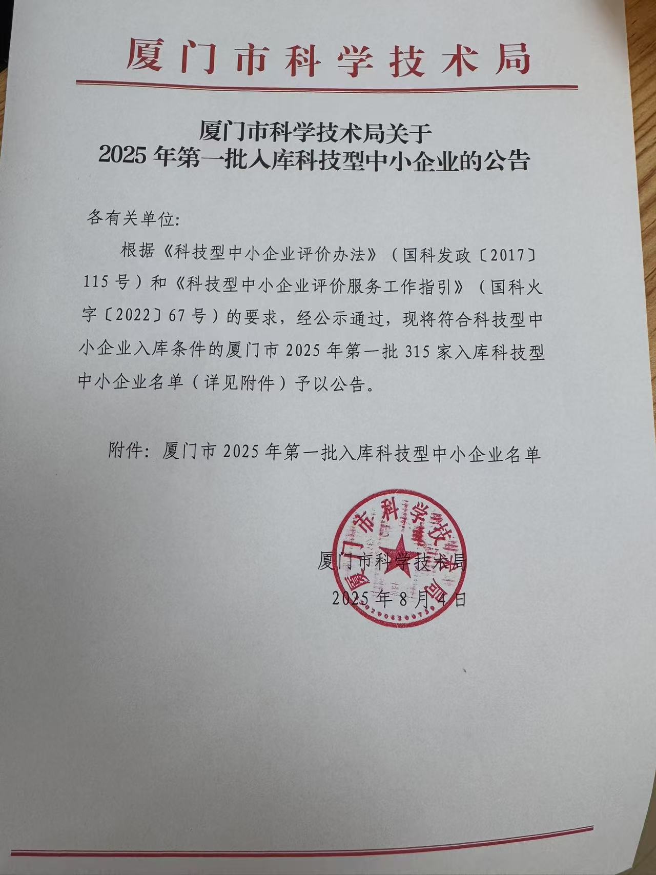 廈門市2025年第1批入庫科技型中小企業(yè)名單公告