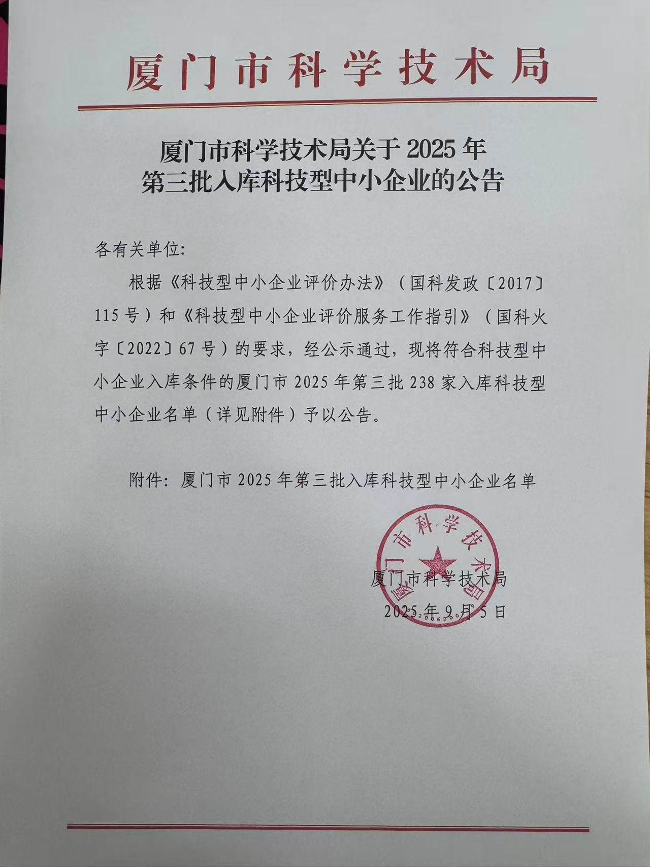 廈門市2025年第3批入庫(kù)科技型中小企業(yè)名單公告正文.jpg PICTURE