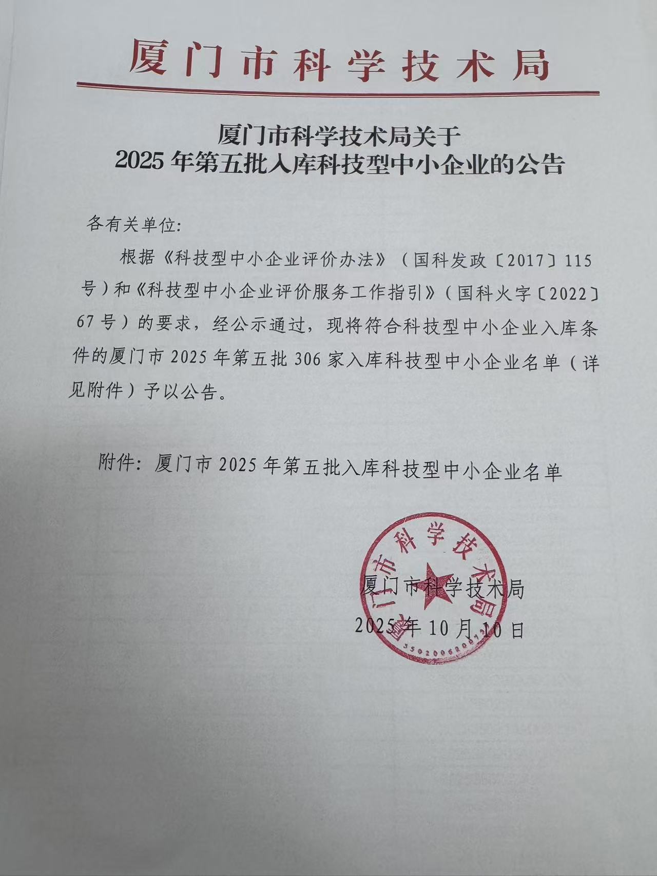 廈門市2025年第5批入庫科技型中小企業(yè)名單公告