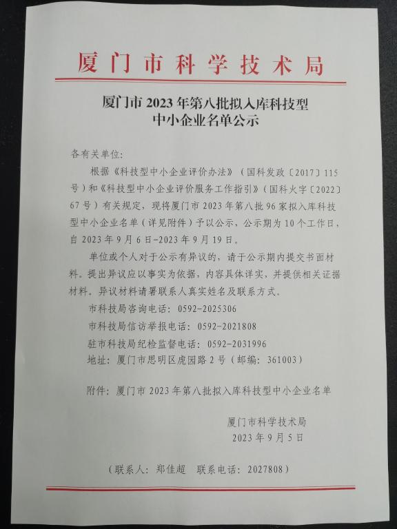 廈門市2023年第8批擬入庫(kù)科技型中小企業(yè)名單.pdf FILE
