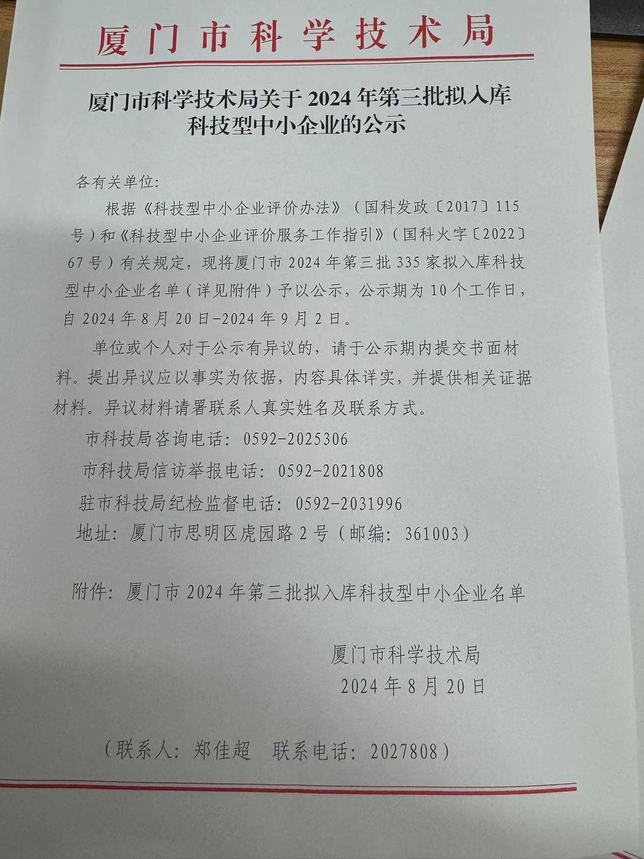 廈門市2024年第3批擬入庫(kù)科技型中小企業(yè)名單公示